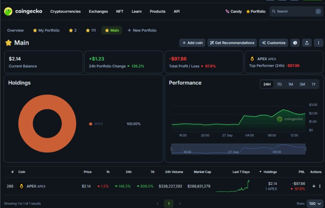 CoinGecko is often the first platform that many retail investors use to “track” a portfolio. Access is easy – no account is strictly necessary, and coins can be manually added in just a few minutes. Balances and valuations update automatically using the same data feeds that power CoinGecko’s market listings.